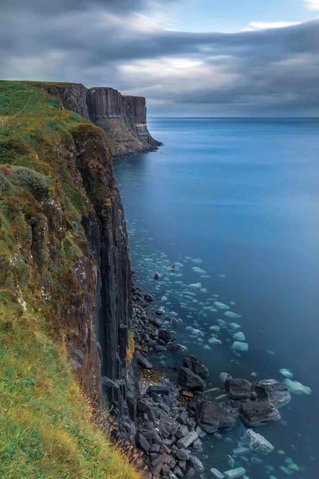 Krystaliczne kaskady u stóp najwyższego na wyspie pasma Black Cuillin. Znajduje się tu aż 12 z 282 „munrosów”, czyli szkockich szczytów przekraczających 3000 stóp (914 metrów). „Kolekcjonowanie” munrosów (nazwanych tak na cześć niejakiego Hugh Munro, który pod koniec XIX wieku stworzył pierwszą listę tych szczytów) to podobno popularna rozrywka wśród Brytyjczyków. Według Wikipedii, do roku 2017 wszystkie 282 szczyty zaliczyło ponad 6 tysięcy osób. My mamy dobrą wymówkę w postaci Mili, więc majestatyczne wzgórza podziwiamy spacerując doliną wzdłuż opadającej kaskadami rzeki. Wiktor kręci tylko nosem, że za mało chmur (dodałyby dramatyzmu zdjęciom).